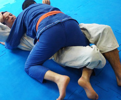 This position is halfway between the mount and the guard, when the top fighter has one leg trapped between the legs of the bottom man. It is still a dominant position for the top fighter, but the best option from this position is to finish "passing the guard" in order to attain side control or a full mount. The bottom man is better able to defend than when fully mounted, but still cannot launch an effective offense from this position. The bottom man's best option from the half mount is to escape, reverse, or recompose a full guard.