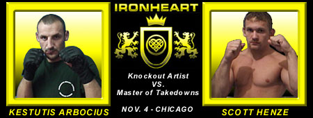 2000 CHICAGO, IL - Who is Kestutis Arbocus, and what business does he have competing in the Ironheart Crown against the likes of Jim Theobald, Roberto Ramirez, and Scott Henze? IHC promoter Eric Moon calls him "Drago," comparing him to the Russian juggernaut from the movie, Rocky IV. "[Mike] Castellano came to me and said he had some Russian guy for the heavyweight division. When I asked what his name was, Mike couldn't tell me. He doesn't speak any English. No one knew his name, so I had to refer to him as Drago!" Having just arrived from his home in Lithuania, this Russian powerhouse barely speaks a word of English, but in the ring, his hands and his feet get his message across loud and clear. Arbocius is not very well known on the mixed martial arts circuit, but he is a heavy name in the kickboxing world. With a record of 13-0, and 8 knockouts under his belt, Kestutis Arbocius is a threat to any man who who faces him in the ring. He is the 1998 World Shidokan Champion, and the 1999 U.S. Shidokan Champion. In a recent bout in Illinois, he added another head to his collection with an early KO victory over Manson Gibson, North American IKF Light Cruiserweight Champion. But how will this kickboxer fare in the Mixed Martial Arts arena? While this remains to be seen, Michael Castellano provides some insight. "He's been training with Keith [Hackney] and I for about six months," Castellano says, "He's still much better on his feet than he is on the ground, but he's got good balance, he's strong as an ox, and its tough to submit him. His division is going to be very exciting. He'll beat anyone standing up. It'll going to take a very powerful grappler to beat him." Did somebody say "very powerful grappler?" Eric Moon, promoter of the Ironheart Crown, has one waiting for him. Scott Henze, of HooknShoot fame, is a long-time wrestler who has put his talents to work for him in the world of submission. A relative newcomer himself, Henze does not hold any formal titles of his own. Nevertheless, his performance in collegiate toughman contests has earned him the title of "Ball State's Toughest Man." Through his participation in Indiana's HooknShoot events, Henze has come to be known for his incredible, Matt Hughes-style, aerial takedowns. They may be a determining factor if he ends up facing Arbocius in the four-man tournament for the heavyweight title. Also competing in the division are Jim Theobald and Roberto Ramirez, two well-rounded Chicago fighters who are adept at all ranges of the game. "Its going to be exciting," Moon comments. "They are all so talented, and their styles are so different. Its impossible to predict how this one will turn out. Anything could happen. The winner of this division isn't going to be the fighter who can hit the hardest, and it isn't going to be the fighter who has the best submission skills. At the end of the night, our heavyweight champ is going to be the fighter who has the ability to control the direction of the fight; the ability to take an opponent out of his element. I've never seen Arbocius or Henze in action, but I know for a fact that Theobald has this ability. We'll just have to wait and see." The Ironheart Crown will be held on November 4, 2000 in St. Andrew's Arena located at 1658 W. Addison in Chicago. Tickets are on sale now. For more information, contact the promoter at (773)793-6555, or visit the event website at www.ironheartcrown.com. ![]() October 16,