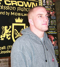 FCF: You have been fighting in the Chicago area for a while now and last year when I came up, Eric Moon [IHC's promoter] told me to watch you fight. What is your background? Jim Theobold: I started training when I was 19; I'm 23 now. I just wrestled one year, my senior year in high school and was pretty good at it. I needed some money to go to school and I heard about this stuff and one thing led to another. I just got me the right people through the years and they kind of molded me, like Chris Brooks, Tommy Bach, and Bob Schirmer recruited me out of a fight that he saw down in Indiana. Bob said that he could work with me so I started making the trip back up here. He's a great coach and I have phenomenal teammates in Shonie Carter, Brian Gassaway and Rolando Higuerros. With teammates like that, you just can't be beat. I have been fighting for those guys forever. I have been doing a lot of my training with Tommy Bach because Chicago is kind of a far drive, but I try to make it out to Bob's, once or twice a week to work on my weaknesses. FCF: Is Tommy your stand-up coach? JT: Yeah, he's a pro kickboxing, undefeated, 2 and 0. He just beat the middleweight or lightweight champ, Bunker. FCF: What is your current record? JT: You wouldn't believe me if I told you. [laughs] I have way too many fights. I just do all the Chicago matches. So I don't even know. I have well over 30 fights. Not all of them are close fist on the ground, some are open hand; some are no hitting on the ground. I've been all over, a lot of Jiu-Jitsu, a lot of Pankration. FCF: How about mentioning some of the more notable fighters that you have fought? JT: I'd like to think that everyone I have fought is notable because they have the courage to get in there and fight. The biggest name I have beaten is Adrian Serrano for the Total Combat title. It was a great fight. It was basically [a match up of] styles that won it. I studied him a lot. Adrian's always been a hero of mine for a long time, so knowing him as well as I did, helped me to win it. I just fight all the time against people with good records. I just do what my coaches say and I do alright. I just beat Danger Zone champ Jason Hallard, Kyle Hennings and Hector Garza. I just beat some of the local fighters here. Roberto [Ramirez], I beat him twice. I won a Pan American Gold Medal. [laughs] Hey Bob, who did I fight? Bob Schirmer: He fights at a moment's notice. A guy will call me and say, "Hey Bob, you got a fighter?" And I will say, "Hey Jim, you wanna fight?" And he'll take the fight. He's just like Shonie, he will just take any fight. JT: [laughing] I'm going to catch up to Shonie [to the number of fights that Shonie has]. BS: Shonie was already bitching that this belt is better than his. FCF: Do you have any fight scheduled? JT: I'm going down to Mexico with Bob. BS: The World Pankration Federation's tournament of the Americas on November 11th. We will be representing the United States. FCF: Do you have any more scheduled? JT: No, but there will be like ten more scheduled by next week. [laughs] I'll probably get some calls. BS: We got a jiu-jitsu championship, my Christmas tournament on December 10th. It will probably have about 180 fighters. It's straight jiu-jitsu. FCF: Where are you heading? You obviously have a bunch of fights, a lot of experience, and a lot of tools. JT: One of the things is that I have great training partners, like I said before. Shonie Carter, Brian Gassaway, Rolando, and all of them and great coaches, like Master Bob and Tommy Bach. Where ever they lead me to go. I mean, I do real well in practice when I roll with these guys and these guys go all over the world. Shonie should have won the Pancrase title. He was robbed. So I figure that if I can go into practice with them and can perform just as well, maybe I can be there, but I'm a schoolteacher first. This is for fun, something that I don't actively pursue. I just talk to Master Bob and he gives me the okay, then we do it. It he doesn't, then cool; I'll just go to school and teach the next day. FCF: So you are not actively seeking a major title? JT: If one comes around, then I'll take it. I won't make a phone call, let's put it that way. BS: If Pancrase or Shooto calls, or someone like that and they have something going, then we'll weigh it and see if the time is right and he's healthy, then we'll take the fight. It depends on what comes up. And that's the same with all of our fighters. If they have enough time to get into super condition, ready for the fight if it is a big fight with a super good fighter, then we'll do it. We try to stay really focused on staying in great shape all the time, so if a fight comes along...that's an opportunity. When you get an opportunity to fight someone with a lot of championships, you got to be ready to take it. FCF: Is there anything else that you want to add? JT: Thanks for coming out to the fight and giving me an interview. Thank you very much. -------------------------------------------------------------------------------- According to Jim, "They were tough guys, but they didn't have much ground work... they seemed more like street-fighters. He was a dirty fighter... poked me in the eye, kicked me in the knee, scratched my face... he was real nice afterwards, but he fought funny." He won a medal. So far, Theobald has won every pankration event he has entered. About 12 or 13 all together: Canada, Mexico, U.S.: Kansas City, San Diego, Chicago... "Just about all of Bob's guys won. Jay Estrada, George Spacek, Lincoln Mathews, Bob's daughters, a ton of us won." Jim is an elementary